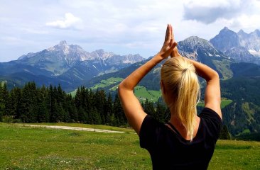Yoga-Lehrerin Jasmin Aigner hat die Teilnehmer immer wieder ersucht, die Natur inklusive Gerüche und Geräusche während des Yogas bewusst wahrzunehmen: „Yoga ist eine wunderbare Methode, um den Alltagsstress hinter sich zu lassen. Unsere Einheiten sind für alle geeignet – egal ob für Anfänger oder Fortgeschrittene. Das Wichtigste ist, bei allen Übungen auf den eigenen Körper zu hören“. Im Anschluss an das Yoga erhielten die Teilnehmer Kräutertee und ayurvedische Kekse. Für viele der Teilnehmer steht nun definitiv fest: Mein schönster Platz für Yoga befindet sich am Roßbrand in Filzmoos! Ein Teil der Gruppe fuhr anschließend mit der Gondel zurück ins Tal und ein paar ganz sportliche Damen wanderten über die Moosalm zurück nach Filzmoos.