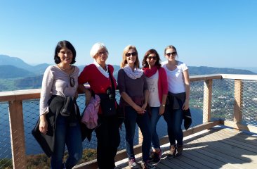 Bei strahlend blauem Himmel starteten wir unseren Tag und machten uns auf den Weg nach Gmunden. Der erste Halt war beim Schloss Orth, welches aus der früheren Fernsehserie „Schlosshotel Orth“ sehr bekannt ist. Das Schloss ist malerisch auf einer winzigen Insel gelegen, welche man über einen hölzernen Steg erreicht. Nachdem wir das Schloss besichtigt hatten, ging es für uns weiter zum Wochenmarkt im Zentrum von Gmunden. Dort schlenderten wir durch die Verkaufsstände und bewunderten die schmackhaften Köstlichkeiten. Leider konnten wir nichts mitnehmen, da wir ja noch einiges am Programm hatten. Nach einer kurzen Kaffeepause auf der Sonnenterrasse von einem Kaffeehaus direkt am See, machten wir uns auf dem Weg zur Grünbergbahn, welche uns zum neu-errichteten Baumwipfelpfad brachte. Der Pfad ist rund 1,4 km lang und schlängelt sich zwischen den Bäumen in bis zu 21 Metern Höhe. Zum Abschluss ging es dann noch auf den großen Aussichtsturm, welcher ganze 39 Meter hoch ist. Die Aussicht da oben war grandios – vor allem, weil das Wetter so schön war!