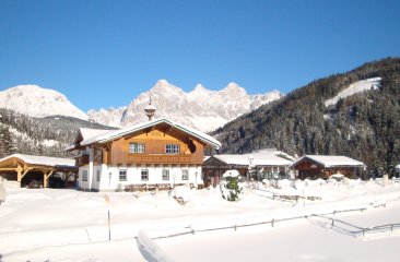 Ein gemütlicher Winterwanderweg führt von Filzmoos zum Mandlberggut. In Richtung Ramsau, vor dem Anstieg der Straße zweigt man rechts ab. Danach geht es über die Brücke und weiter auf den Weg, der etwas steiler beginnt. Relativ flach geht es über den Höhenweg Mandling zum Mandlberggut.