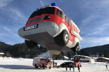 Gestern gab es im Rahmen der diesjährigen Ballonwochen ein besonderes Highlight zu bestaunen: Auf der Hammerwiese wurde ein Ballon in Form eines Feuerwehrautos aufgeblasen. Mit von der Partie war natürlich die Feuerwehr Filzmoos, die tatkräftig zur Seite stand.