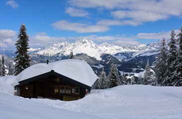 Dabei gibt es eine Aktivität, die wir unseren Märzgästen besonders ans Herz legen: Ein Frühlingsspaziergang auf der Höhenloipe am Roßbrand! Hier oben kann man entlang der 16 km langen Loipen bis zur Radstädter Hütte oder bis zur Karhütte wandern. Auf über 1.600 Metern Seehöhe sieht man die Täler der Umgebung aus der Vogelperspektive und kann die Aussicht auf über 150 markante Alpengipfel genießen. Während man durch die tiefverschneite Landschaft flaniert, tauchen viele in das Wintermärchen ein, können richtig abschalten und entschleunigen. Der Weg selbst führt entlang des Grads am Roßbrand, wodurch sich daraus ein gemütlicher Spaziergang ohne großartige Steigungen ergibt. Dadurch ist die Route auch für unsportlichere oder ältere Personen ideal geeignet. Bis zur ersten Hütte ist man in etwa eine Stunde unterwegs.
