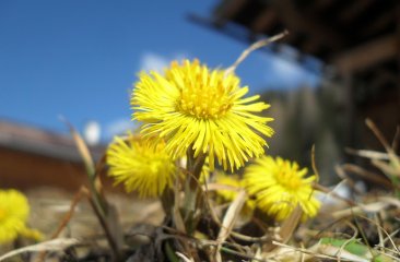 Huflattich wird in der Volksmedizin schon seit mehr als 1000 Jahren als beruhigendes und schleimlösendes Hustenmittel angewendet und heute noch von Heilpraktikern und Medizinern empfohlen. Ich verwende dazu die Huflattichblüten, die bei uns in Filzmoos im März und April gesammelt werden können. Zudem ernte ich die Blätter der Blume im Mai und Juni, um sie ebenfalls für Teemischungen zu verwenden. Diesen hufförmigen Blättern verdankt die Pflanze ihren Namen – und sie haben definitiv einen höheren Wirkstoffgehalt als die Blüten.