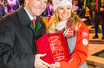 Unser Landeshauptmann Dr. Wilfried Haslauer und Bezirkshauptmann Mag. Harald Wimmer ließen es sich nicht nehmen persönlich bei der Feier mit dabei zu sein. Nach einer Ansprache gratulierte Landeshauptmann Haslauer der Skifahrerin und überreichte ihr als Geschenk einen persönlich gewidmeten Ehrenbecher.
