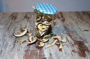 Kenner und Genießer wissen, dass sich durch das Trocknen der feine Pilzgeschmack das ganze Jahr über genießen lässt. Besonders gut sind die trockenen Pilzstreifen als Suppeneinlage geeignet. Oder man verarbeitet sie in einer Sauce, die zu einem Fleischgericht oder gar Wild serviert wird. Getrocknete Steinpilze können aber genauso gut für ein Risotto oder ein Pastagericht verwendet werden. Egal in welchem Gericht sie schließlich landen, wichtig ist nur, die getrockneten Pilze vor dem Kochen für ein paar Stunden in warmem Wasser einzuweichen.