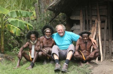 Das Überleben war oft knapp - schon einige Male war Helmut in akuter Gefahr, doch mit viel Glück meisterte er bisher jede lebensgefährliche Situation. In seinem aktuellen Bild- und Filmabenteuer „STEINZEIT Expedition Neuguinea“ erzählt er von Naturvölkern und deren Überleben im Dschungel. Insgesamt drei Montage lang war er in entlegenen Regionen Neuguineas unterwegs. Dort traf er unter anderem auf Menschen in Siedlungen, die noch nie zuvor einen „Weißen“ gesehen hatten und weder Kochtopf, Besteck noch Teller kennen. Sie ernähren sich ausschließlich von dem, was die Natur hergibt – roh oder am offenen Feuer zubereitet. Bei der Anreise machte Helmut einen kurzen Abstecher nach Indonesien, wo er zwei urzeitliche Tiere kennenlernte. Komodowarane sind die größten Eidechsen der Welt und können bis zu 3 Meter lang werden. Mit ihrem Gift bringen sie große Beutetiere wie Büffel oder Wildschweine zur Strecke. Da es nur noch rund 4000 Komodowarane gibt, gehören sie ebenso wie die Walhaie zu den stark gefährdeten Tierarten. Diese sind mit bis zu 13 Metern Länge die größten Haie und zugleich die größten Fische der Gegenwart. Helmut schwamm mit ihnen „Auge in Auge“ vor der Küste Neuguineas.