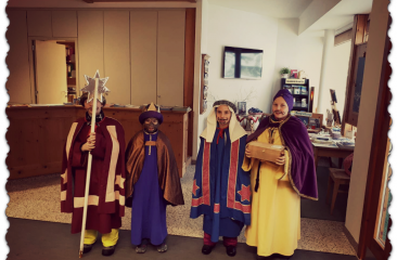 Die Heiligen Drei Könige stehen für drei Kontinente. Caspar verkörpert Afrika, daher seine schwarze Gesichtsfarbe. Balthasar symbolisiert mit seinem gelben Gesicht Asien und Melchior steht mit leicht brauner Haut für Europa. Als Begleiter gibt es auch noch einen „Sternträger“. Verkleidet als Könige betreten sie gemeinsam das Haus und tragen Lieder und Gedichte vor. Damit wollen sie ein Zeichen setzen – für alle eine gerechte Welt! Sie haben eine Spendenbox dabei, um Menschen in ärmeren Ländern zu unterstützen.