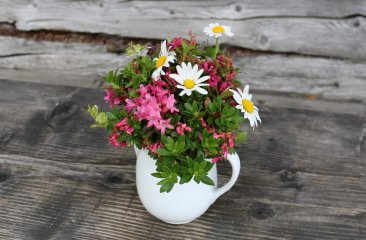 Normalerweise versinken viele Almwiesen bereits im Juni in einer rosaroten Blumenpracht. Dann nämlich blüht die weitverbreitete Alpenrose, die man in unserer Region auch als Almrausch bezeichnet. Nachdem heuer die Schneeschmelze im Almgebiet etwas mehr Zeit benötigte, darf man sich jetzt im Juli auf ein Blumenparadies freuen. Viele leidenschaftliche Wanderer und Bergfreunde sind sich jedenfalls einig, dass die Zeit der Almrosenblüte die schönste Jahreszeit ist. Wer sie einmal miterlebt hat, der kann nur zustimmen, denn wenn ganze Wiesen im saftigen Grün und leuchtendem Rosa vor einem liegen, ist der Anblick dieser Farbenpracht einfach unbeschreiblich schön und mit Sicherheit unvergesslich.