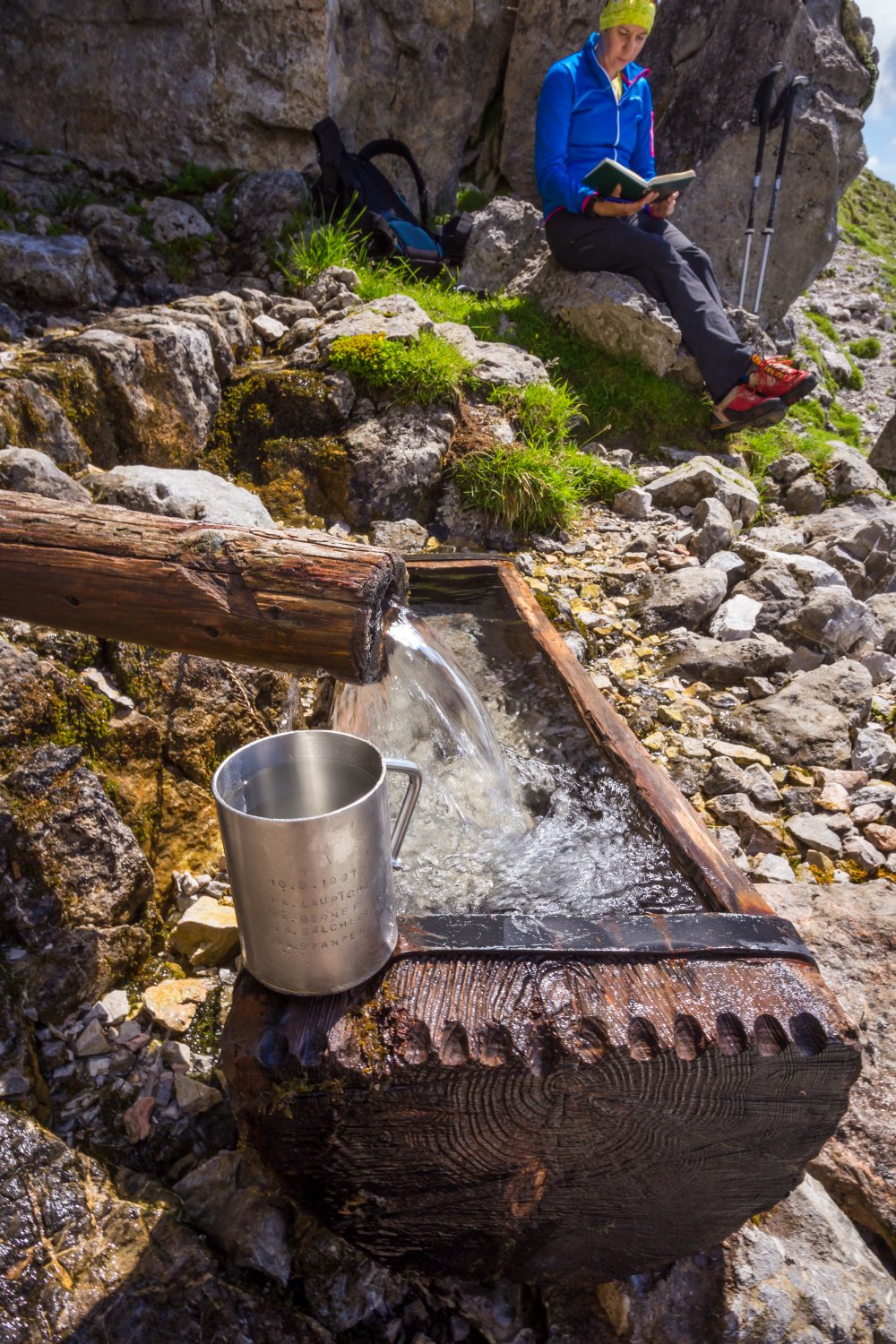 Ich genoss die Ruhe und die wunderbare Aussicht und spürte die kraftvolle Energie dieses Platzes und des Wassers. Nach einiger Zeit kam eine kleine Wandergruppe unter Führung von "Martin" vom Outdoorcenter Filzmoos Aktiv zum Bründl. Alle freuten sich, dass sie den steilen Anstieg geschafft haben.