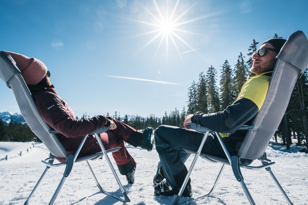 Genug vom Skifahren? Kein Problem! Auch abseits der Piste kann man den Frühlingsbeginn genießen. Ein Spaziergang auf der Höhenloipe Roßbrand ist perfekt, um etwas Sonne zu tanken und man genießt dabei noch dazu einen atemberaubenden Panoramablick.