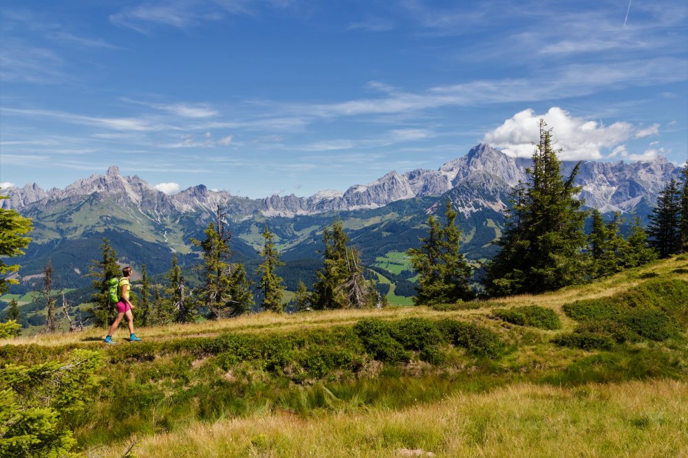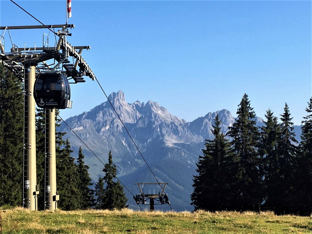 Nicht nur im Winter, sondern auch im Sommer geht es hier in Filzmoos mit der Papageno-Gondelbahn hoch hinauf: Vom Ortszentrum aus erreicht man die Bergstation in nur sieben Minuten und kann auf einer Höhe von 1.770 Metern ein wunderschönes 360-Grad-Panorama mit Blick auf über 150 markante Alpengipfel genießen. Gerade wenn man an einem schönen Sommertag schnell auf den Berg möchte oder wenn man mit den Kindern unterwegs ist, bietet sich eine Fahrt mit der Gondelbahn besonders an. Von der Bergstation aus sind verschiedene Wanderungen in alle Himmelsrichtungen möglich. Entweder man wandert den Grad entlang auf die Radstädter Hütte, talabwärts Richtung Radstadt oder aber auch zurück nach Filzmoos.
