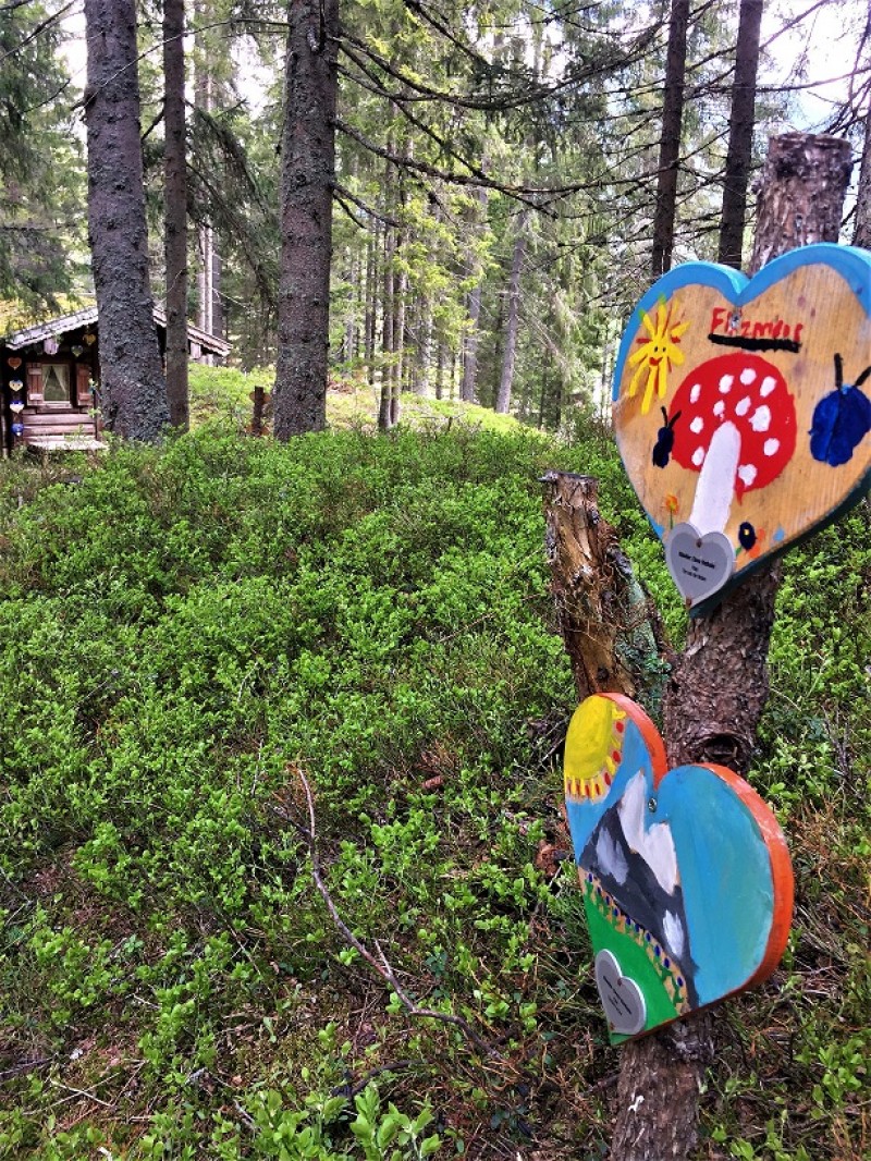 Wir starten unseren kleinen Wandertag bereits beim UNICEF-Herzerlweg. Dort findet man von den Kindern der Volksschule Filzmoos bunt bemalte Herzen den ganzen Weg entlang. Dieser ist für Familien ebenso geeignet wie für Menschen, die nicht mehr ganz so gut zu Fuß sind.