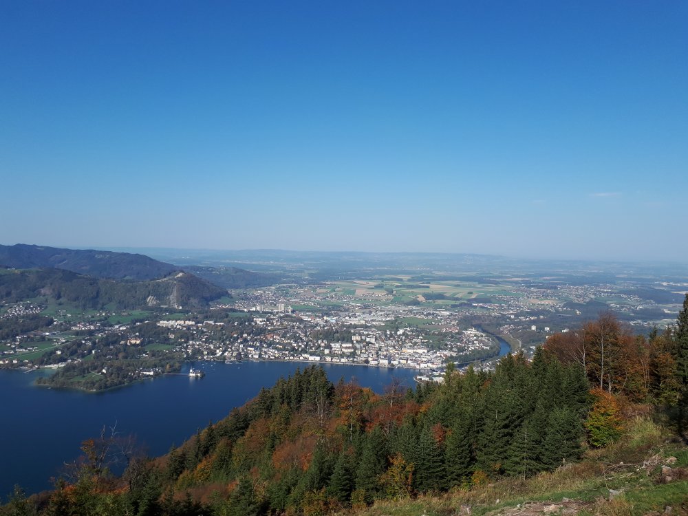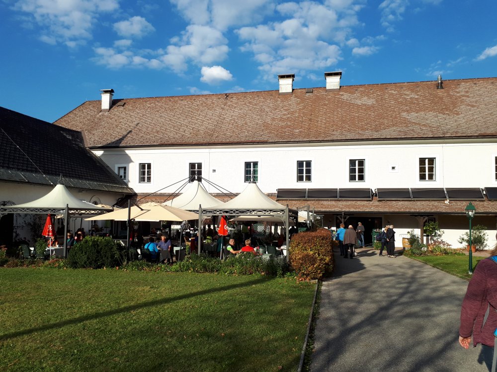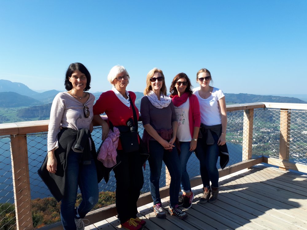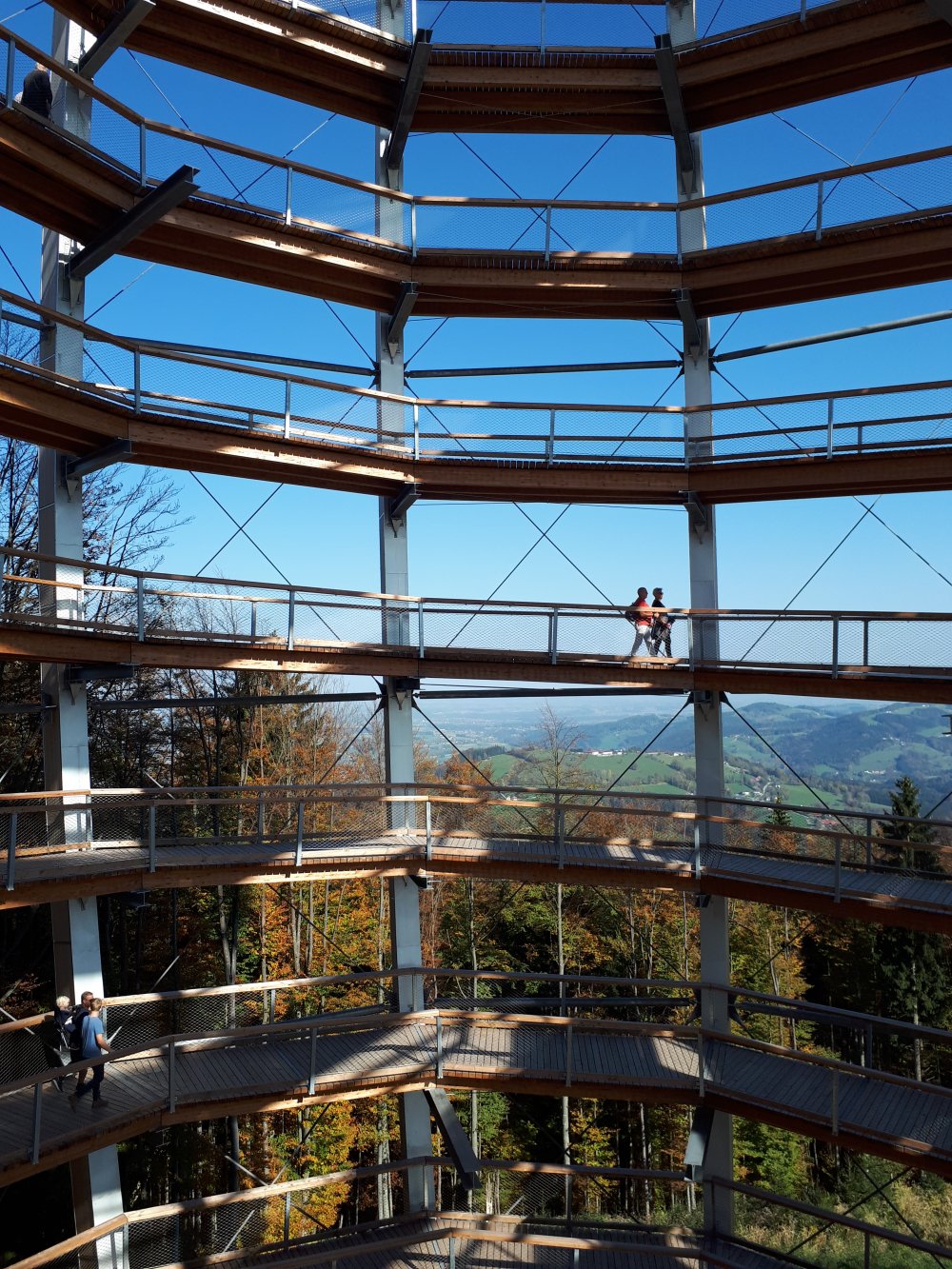Bei strahlend blauem Himmel starteten wir unseren Tag und machten uns auf den Weg nach Gmunden. Der erste Halt war beim Schloss Orth, welches aus der früheren Fernsehserie „Schlosshotel Orth“ sehr bekannt ist. Das Schloss ist malerisch auf einer winzigen Insel gelegen, welche man über einen hölzernen Steg erreicht. Nachdem wir das Schloss besichtigt hatten, ging es für uns weiter zum Wochenmarkt im Zentrum von Gmunden. Dort schlenderten wir durch die Verkaufsstände und bewunderten die schmackhaften Köstlichkeiten. Leider konnten wir nichts mitnehmen, da wir ja noch einiges am Programm hatten. Nach einer kurzen Kaffeepause auf der Sonnenterrasse von einem Kaffeehaus direkt am See, machten wir uns auf dem Weg zur Grünbergbahn, welche uns zum neu-errichteten Baumwipfelpfad brachte. Der Pfad ist rund 1,4 km lang und schlängelt sich zwischen den Bäumen in bis zu 21 Metern Höhe. Zum Abschluss ging es dann noch auf den großen Aussichtsturm, welcher ganze 39 Meter hoch ist. Die Aussicht da oben war grandios – vor allem, weil das Wetter so schön war!