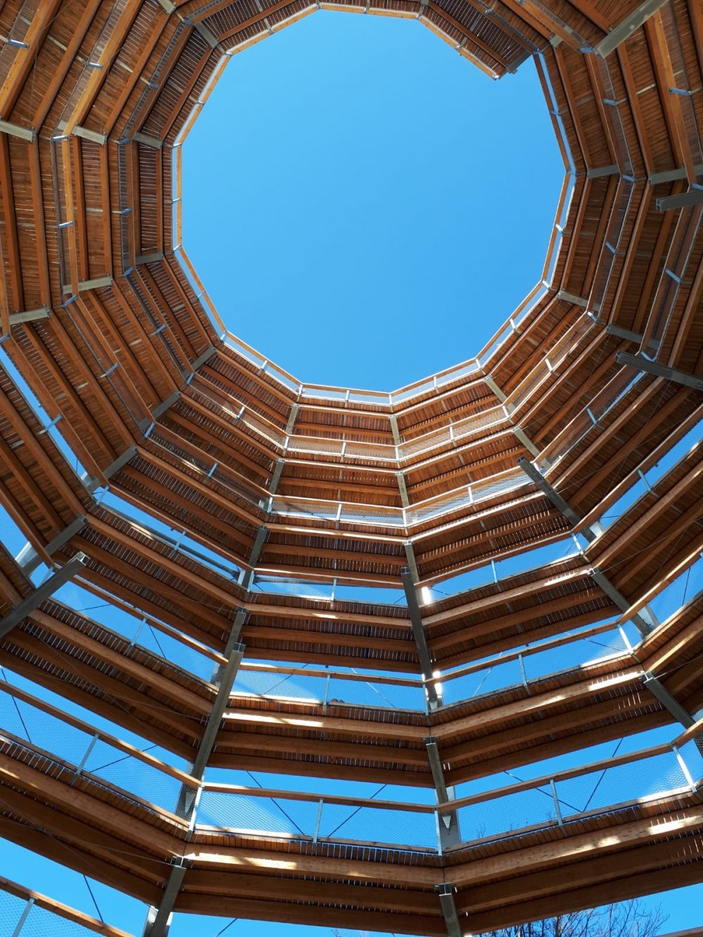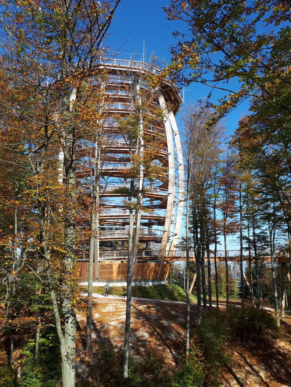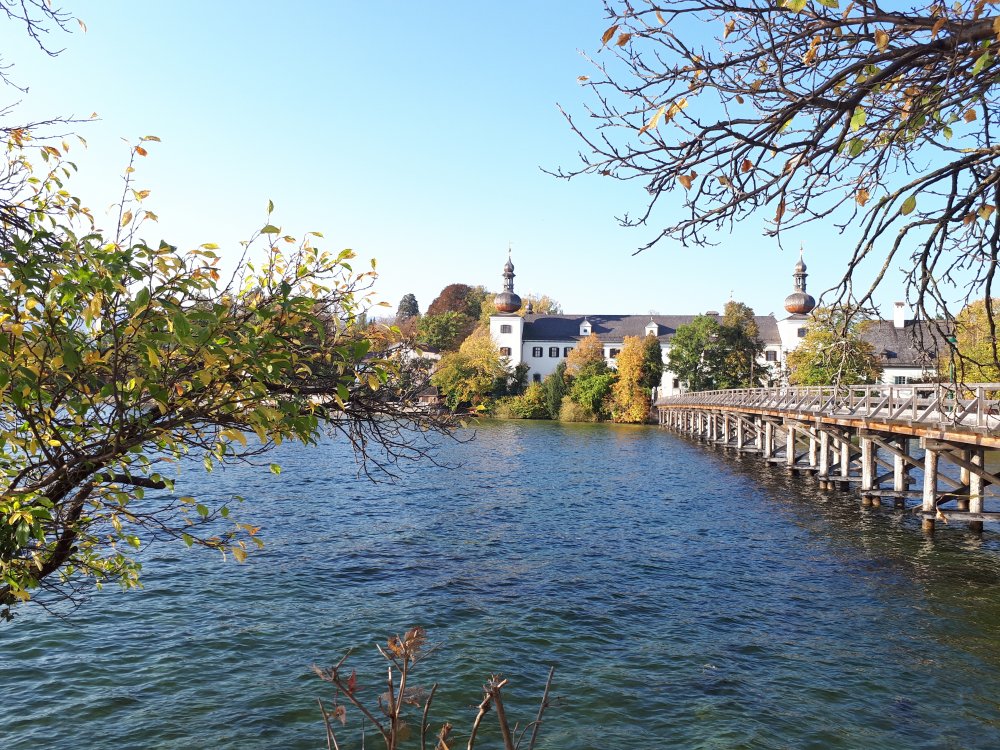 Bei strahlend blauem Himmel starteten wir unseren Tag und machten uns auf den Weg nach Gmunden. Der erste Halt war beim Schloss Orth, welches aus der früheren Fernsehserie „Schlosshotel Orth“ sehr bekannt ist. Das Schloss ist malerisch auf einer winzigen Insel gelegen, welche man über einen hölzernen Steg erreicht. Nachdem wir das Schloss besichtigt hatten, ging es für uns weiter zum Wochenmarkt im Zentrum von Gmunden. Dort schlenderten wir durch die Verkaufsstände und bewunderten die schmackhaften Köstlichkeiten. Leider konnten wir nichts mitnehmen, da wir ja noch einiges am Programm hatten. Nach einer kurzen Kaffeepause auf der Sonnenterrasse von einem Kaffeehaus direkt am See, machten wir uns auf dem Weg zur Grünbergbahn, welche uns zum neu-errichteten Baumwipfelpfad brachte. Der Pfad ist rund 1,4 km lang und schlängelt sich zwischen den Bäumen in bis zu 21 Metern Höhe. Zum Abschluss ging es dann noch auf den großen Aussichtsturm, welcher ganze 39 Meter hoch ist. Die Aussicht da oben war grandios – vor allem, weil das Wetter so schön war!