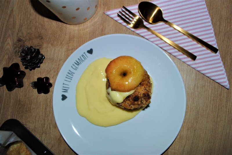 - Bratäpfel mit Vanillesauce servieren. Kleiner Tipp: Wer möchte gibt kurz vor dem Servieren noch einen Klecks Mascarpone oben drauf.