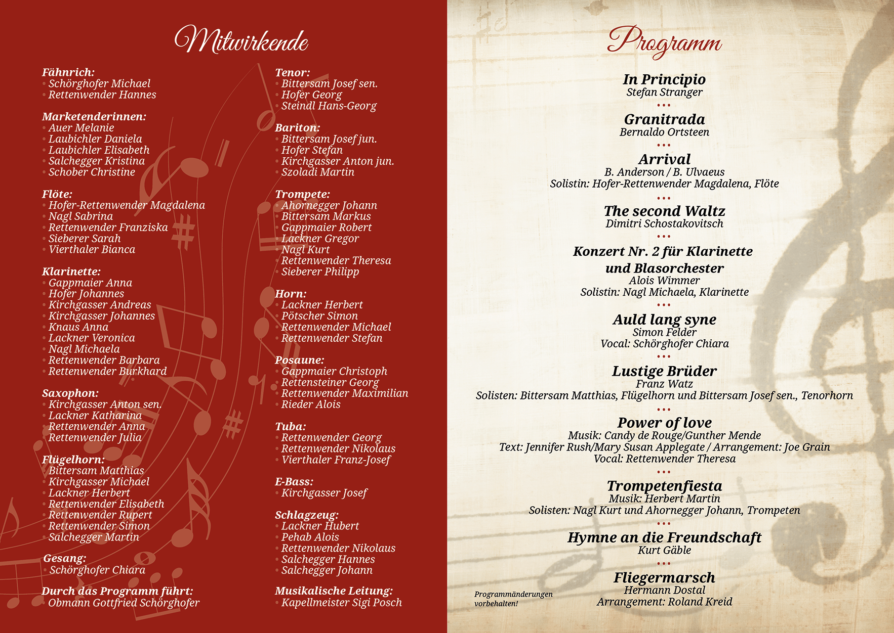 Die Trachtenmusikkapelle Filzmoos freut sich über euren Besuch und wünscht einen angenehmen Konzertabend!