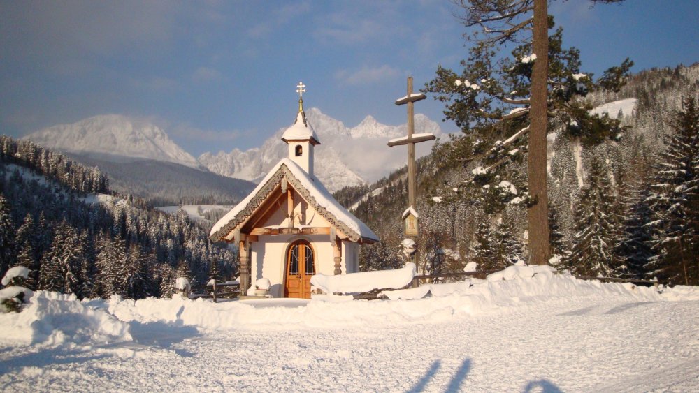 Ein gemütlicher Winterwanderweg führt von Filzmoos zum Mandlberggut. In Richtung Ramsau, vor dem Anstieg der Straße zweigt man rechts ab. Danach geht es über die Brücke und weiter auf den Weg, der etwas steiler beginnt. Relativ flach geht es über den Höhenweg Mandling zum Mandlberggut.
