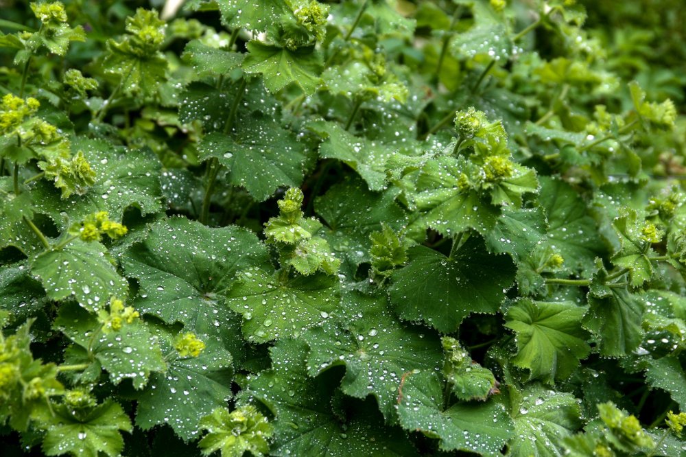 In der freien Natur findet man den Frauenmantel mit seinen gesägten und nierenförmigen Blättern vor allem auf feuchten Wiesen und an Bachläufen auf. Eine schöne Besonderheit sind Tautropfen, die an manchen Frühlingstagen an der Oberfläche der Frauenmantelblätter vor sich hin glitzern. Wenn uns nun im Mai der Frauenmantel mit seinen saftig grünen Blättern begrüßt, so hat er meist eine Botschaft für uns: