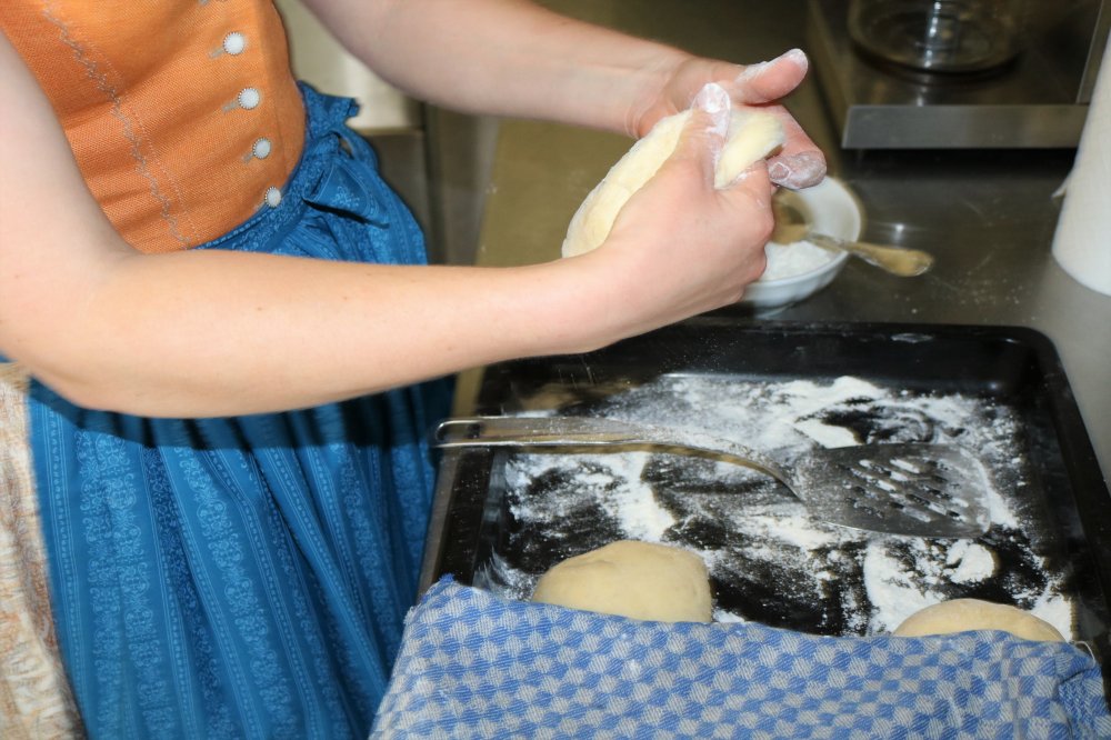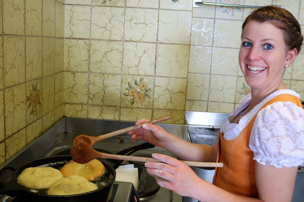 Ganz besonders luftige Bauernkrapfen nach Oma's Rezept gibt es zum Beispiel auf der Kirchgasshütte/Aualm. Sennerin Justina weiß wie man richtig gute Krapfen macht, da sie diese Speise täglich für ihre Gäste zubereitet.