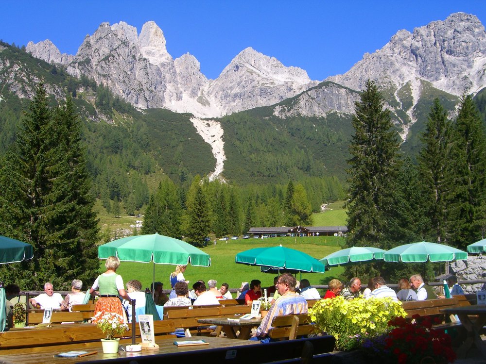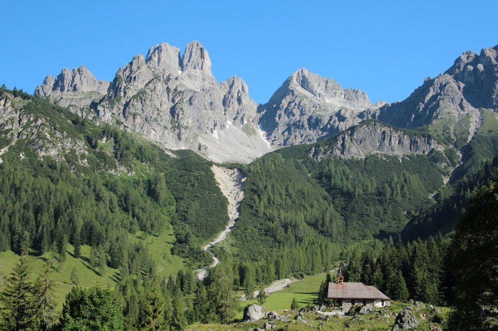 Als Wahrzeichen von Filzmoos wacht die mächtige Bischofsmütze über eine besondere Almhütte am Fuße der Bergkulisse - denn dort liegt die urige Oberhofalm, gut eingebettet im saftigen Grün des Hofalmgebiets und wartet auf die vielen Wanderer, Spaziergänger und Tagesausflügler, die seit etlichen Jahren im Familienbetrieb Einkehr halten. Nicht nur, dass man in diesem Almgebiet die wunderschöne Bergwelt und die Natur in vollen Zügen genießen kann – nein auch die Feinschmecker kommen auf der Oberhofalm sicher nicht zu kurz! Chef Harry verwöhnt die Gäste mit saisonalen Schmankerl, traditionellen Fleischkrapfen oder heimischem Hirschragout – auf dieser Almhütte ist sowohl für den großen als auch für den kleinen Feinspitz das Richtige dabei. Egal, ob man eine hausgemachte Mehlspeise oder Bauernspezialtität nun auf der Sonnenterrasse oder in einer der gemütlichen Stuben genießt: Im Freien verzaubern der Blick auf die Bischofsmütze und die Gipfeln des Gosauer Steins – im Inneren warten Hüttenzauber und Gaudi auf die Gäste. Etwas ganz Besonderes wartet unweit der Hütte: Die neu erbaute Kapelle „Maria am Steineggl“, die zum Innehalten einlädt und die Möglichkeit bietet, Bergmessen und kirchliche Trauungen nach Anmeldung zu feiern. Die Kapelle wurde in den Jahren 2015-2016 von den Besitzern der Oberhofalm, Johanna und Christian Salchegger, erbaut. Über 30 Jahre führten sie den Gastbetrieb auf der Alm, seit 01. Dezember 2006 haben Monika und Harry Habersatter die Alm gepachtet und führen seither den Betrieb. Wer sich nun auf den Weg zur Oberhofalm macht, muss diesen nicht unbedingt zu Fuß zurücklegen. Die Hütte ist ebenso per Wanderbus und Auto oder auch gerne per Pferdekutsche über die Mautstraße Hofalm erreichbar. Jedenfalls ist für alle, die eine urige Almhütte auf ganz ursprüngliche Art und Weise entdecken wollen, die Oberhofalm ein lohnender Zielpunkt an einem der schönsten Talschlüsse Österreichs!
