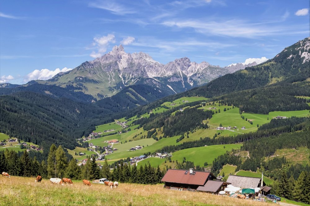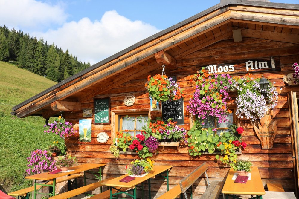 Die Moosalm am Roßbrand in Filzmoos ist vielen ein Begriff. Die meisten Wanderer bringen sie mit einer phantastischen Küche sowie außergewöhnlichen Blumenpracht in Verbindung. Zudem hat man auf der Moosalm einen wunderschönen Ausblick auf die Bischofsmütze, den Rettenstein sowie das Dachstein-Massiv. Was daneben ins Auge springt, sind die Sennerinnen auf der Hütte: Die Zwillinge Johanna und Marlene gibt es hier oben nur im Doppelpack. „Ich bin in der Küche, Marlene serviert. Gemeinsam mit unseren Töchtern sind wir ein unschlagbares Team“, meint Johanna, die täglich den berühmt berüchtigten Moosalm-Salat herrichtet. Das selbst kreierte Gericht wird nämlich mit eigenen Wachteleiern serviert und kommt bei den Gästen sehr gut an. Natürlich freuen sich auch die kleinen Besucher darüber, die niedlichen Tierchen im Gehege vor der Hütte zu beobachten. Gleich nebenan gibt es auch noch einige Hasen, die sich gerne von den Kindern füttern und streicheln lassen. Außerdem sind viele Gäste von der Blumenpracht rund um die Hütte verzaubert, da sich Marlene und Johanna liebend gerne um ihre blühenden Pflanzen kümmern.