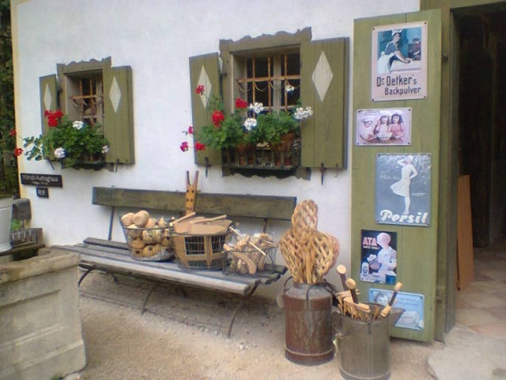Der Regen hörte auch bei der Ankunft in Großgmain nicht auf. Nichts desto trotz machten sich alle auf um das Museum individuell zu durchwandern. Regenschirme wurden aufgespannt um sich vor der Nässe zu schützen. Die meisten nutzten die Museumsbahn, um mit ihrer Besichtigung am hinteren Ende der Anlage zu beginnen. Es bildeten sich bald kleinere und bald größere Gruppen, die gemeinsam - wenn auch nur gedanklich - in die Vergangenheit abtauchten. Immer wieder hörte man die Worte „Weißt du noch, das ist ja wie früher?“ oder „Kannst du dich noch an damals erinnern, das ist ja wie in unserer Kindheit.“. Auch Worte wie „Ja, so sind wir aufgewachsen.“, konnte sich so mancher nicht verkneifen. Zurück in diese Zeit mag wohl niemand mehr. Zu groß sind die Annehmlichkeiten des modernen Lebens geworden. Interessant war es für so manch einen ein altes Klassenzimmer zu betreten. Die Erinnerungen an die damalige Zeit waren sofort wieder da. Man hörte regelrecht das Gemurmel der Kinder, das Klopfen des Rohrstockes oder das Klappern des Deckels vom Tintenfass. Für andere von uns war wohl der alte Krämerladen der richtige Ort um für einen kleinen Augenblick in die Vergangenheit abzutauchen. Die liebevolle Präsentation vieler Artikel aus früheren Zeiten war für viele von uns überwältigend. Bei all diesen Eindrücken, bemerkten wir nicht, dass es in der Zwischenzeit zu regnen aufgehört hatte.