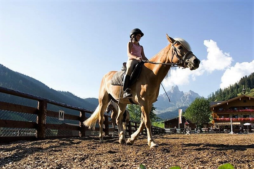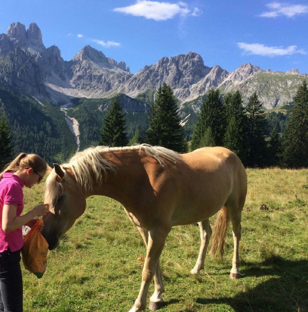 Katharina Ebner vom Hammerhof in Filzmoos saß das erste Mal mit 2 Jahren am Rücken eines Haflingers und ist seither begeistert vom Reitsport. Die Pferdeliebhaberin hilft am elterlichen Bauernhof gerne mit, denn hier gibt es seit vielen Jahren Reitunterricht für Anfänger oder Fortgeschrittene. Entweder man macht seine ersten Erfahrungen auf der Anlage direkt vor dem Hof oder man reitet mit den Reitlehrerinnen aus und genießt die schöne Berglandschaft am Rücken der Pferde. Außerdem gibt es die Möglichkeit Pferdekutschenfahrten zu machen. Aber eines ist für Katharina und alle anderen leidenschaftlichen Reiter klar: „Reiten ist nicht nur ein Sport, Reiten ist Balsam für Körper und Seele. Ein Pferd ist kein Sportgerät, wie beispielsweise ein Ski, den man nach dem Sport einfach zur Seite legt. Ein Pferd ist ein Lebewesen, mit dem man beim Reiten zusammenarbeiten muss. Und genau das ist eine sehr schöne Sache. Man ist immer in Verbindung mit dem Pferd“, erklärt Katharina.