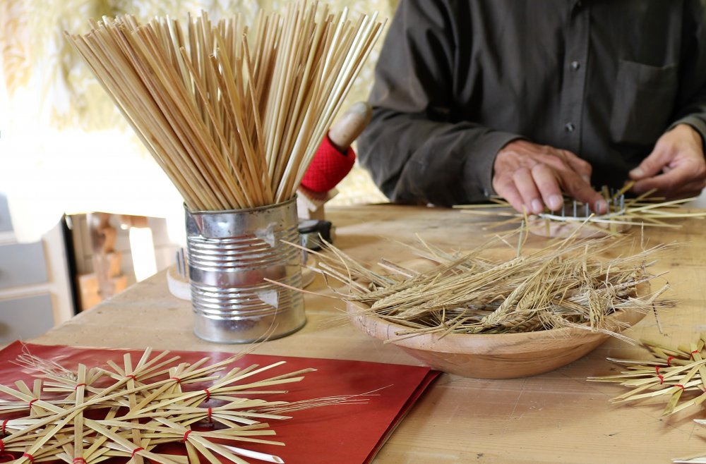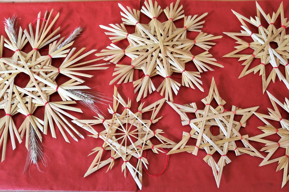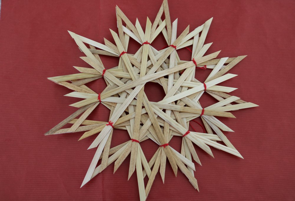 Als vor langer, langer Zeit ein Engel verkündete, dass das kleine Jesukind geboren sei, herrschte im Himmel Ausnahmezustand: Alle freuten sich riesig über diese schöne Nachricht und suchten sogleich nach einem passenden Geschenk für das neugeborene Kindlein. Ein Engel rief: "Ich schenke dem Baby eine warme Decke, damit es in der Kirppe gut schlafen kann!" Ein anderer Engel meinte: "Von mir bekommt das Jesukind eine selbstgestrickte Haube, dann friert es im Winter nicht!" Auch die heiligen drei Könige waren sich bereits einig: "Wir schenken Gold, Weihrauch und Myrrhe. Gold ist besonders wertvoll, Myrrhe eine gute Heilpflanze und auch Weihrauch hilft, wenn das Kindlein sich einen Schnupfen holen sollte." Nur der kleine Engel Kasimir hatte keine Geschenkidee. Er war sehr traurig, denn er konnte kein Geschenk um viel Geld kaufen. Er konnte auch keine Kleidung stricken oder gar Gold besorgen. Mit Tränen in den Augen setzte er sich in seinen Stall, wo sein kleines Schaf Mona wartete. Als Mona sah, dass Engel Kasimir so sehr weinte, wollte sie ihn trösten: "Ach Kasimir - warum machst du dem Jesukind kein schönes Spielzeug aus dem Stroh hier im Stall?" Plötzlich hatte Kasimir eine Idee und fing sogleich an, das schönste Stroh zu sammeln. Danach zupfte er rote Wolle aus seinem eigenen Schal. Kasimir bastelte und bastelte. Und irgendwann drehte er sich zum kleinen Schaf um und sagte: "Schau Mona - das ist ein wunderschöner Strohstern für das Jesukindlein. Wir können diesen Stern im Stall aufhängen und das Baby wird sich freuen, wenn er tanzt und strahlt. Außerdem wird dieser Stern gut auf das Jesukind aufpassen und jeder wird wissen, dass dieses Kind etwas ganz Besonderes ist!" Engel Kasimir und Schaf Mona machten sich mit den anderen Engeln auf den Weg. Am Ende lag das Jesukind mit einer schönen Decke in der Krippe, hatte die warme Haube auf, das Gold glänzte und Myrrhe und Weihrauch dufteten herrlich. Doch noch viel schöner war der Strohstern von Kasimir, der oberhalb des Bettes vom Jesukind strahlte und das kleine Kind ebenfalls zum Strahlen und Lachen brachte. Engel Kasimir und Schaf Mona waren überglücklich.Übrigens: Der Name Kasimir bedeutet "Der Friedensbringer". Strohsterne sind heute noch ein Symbol für Weihnachten und mittlerweile für viele Menschen zum unverzichtbaren Teil der Festdekoration geworden. Aber nur mehr ganz wenige beherrschen das Handwerk, diese filigranen Kunstwerke selbst herzustellen.