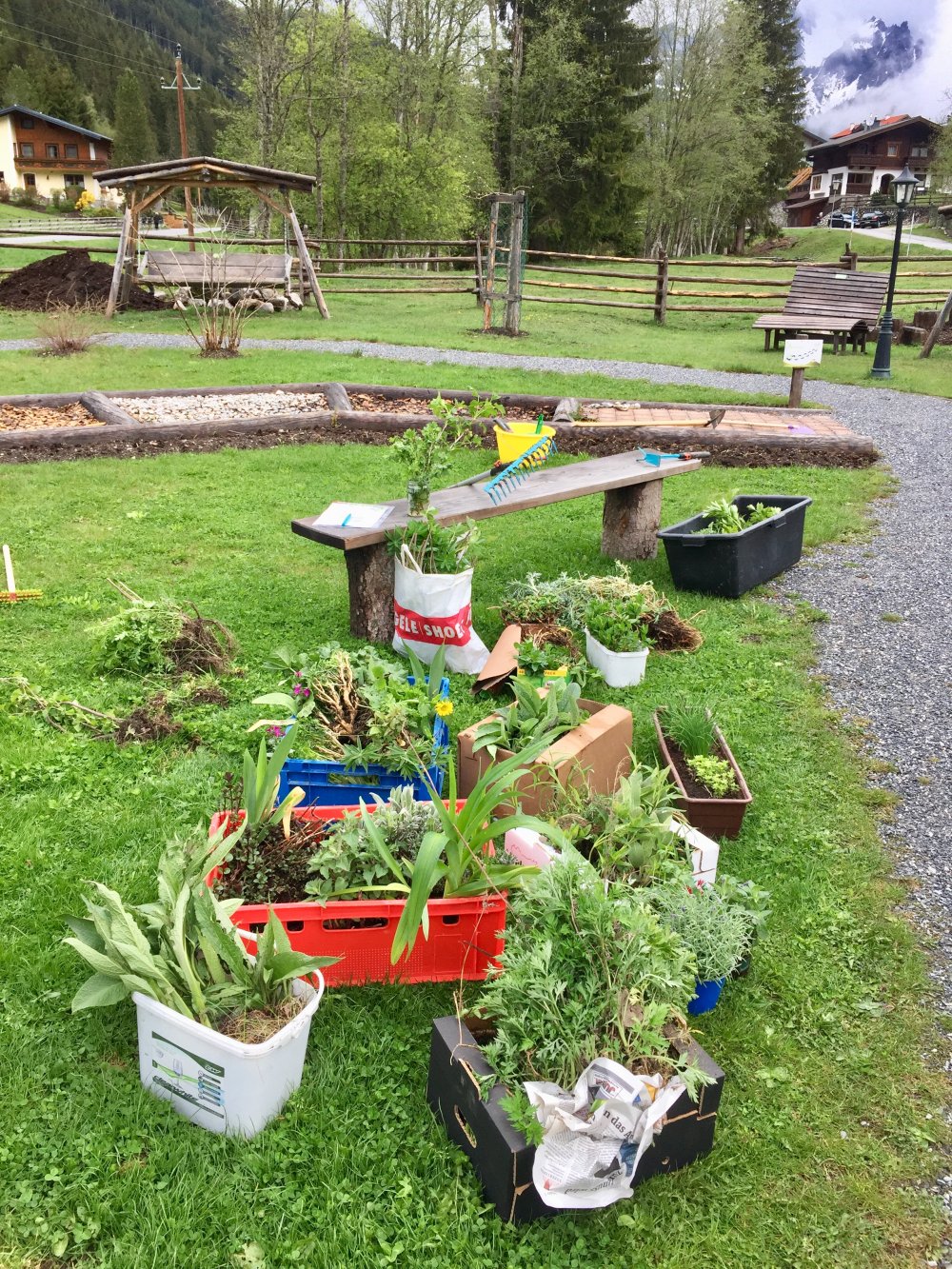 Durch die tatkräftige Unterstützung und die helfenden Hände vieler Einheimischer, sowie Ideen und Kreativität aller Mitwirkenden, nahm der Kräutergarten schnell eine schöne Form an. Eine Fläche von ca. 150 bis 200 m² wurde als Kräutergarten bepflanzt.
