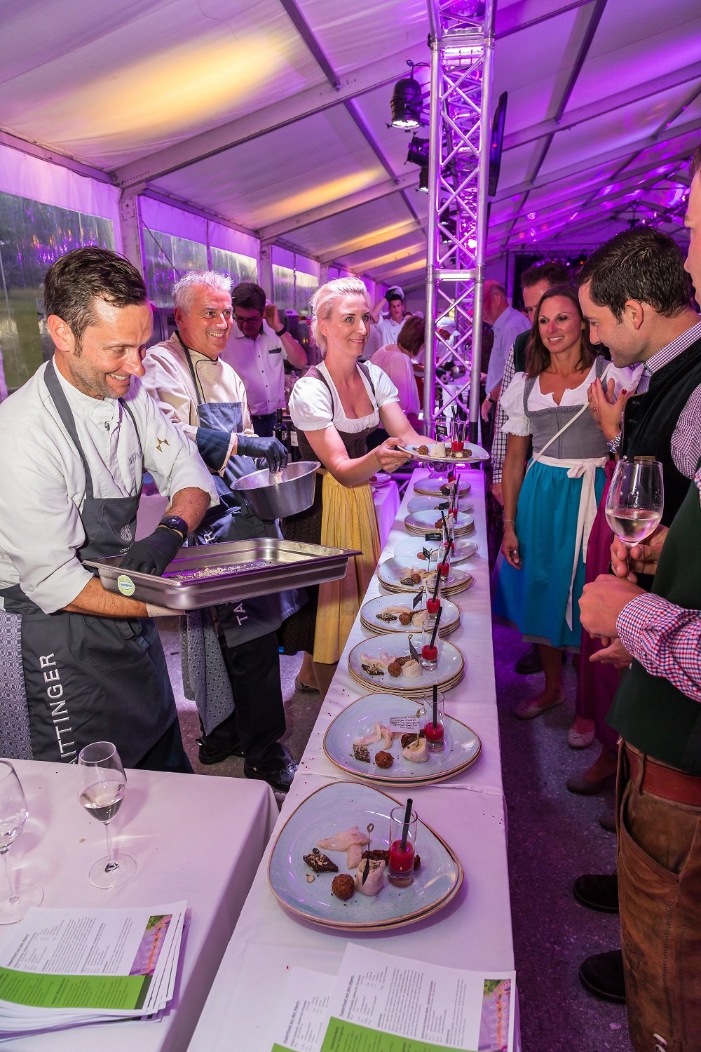 Feierlich eröffnet wurde der Abend mit einer Begrüßungsrede von Haubenköchin Johanna Maier und Herrn Bürgermeister Johann Sulzberger. Der ORF-Moderator Michael Frey führte anschließend durch den Abend. Für die musikalische Umrahmung sorgten die Salzburger Band T.M.O. und der Mundart-Musiker Train D-Lay.