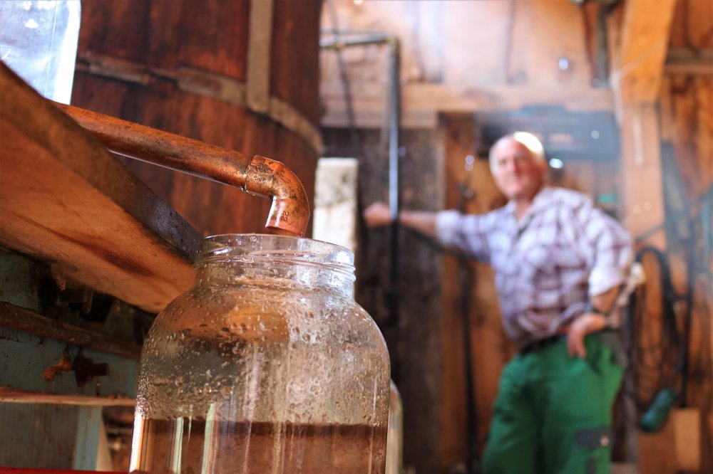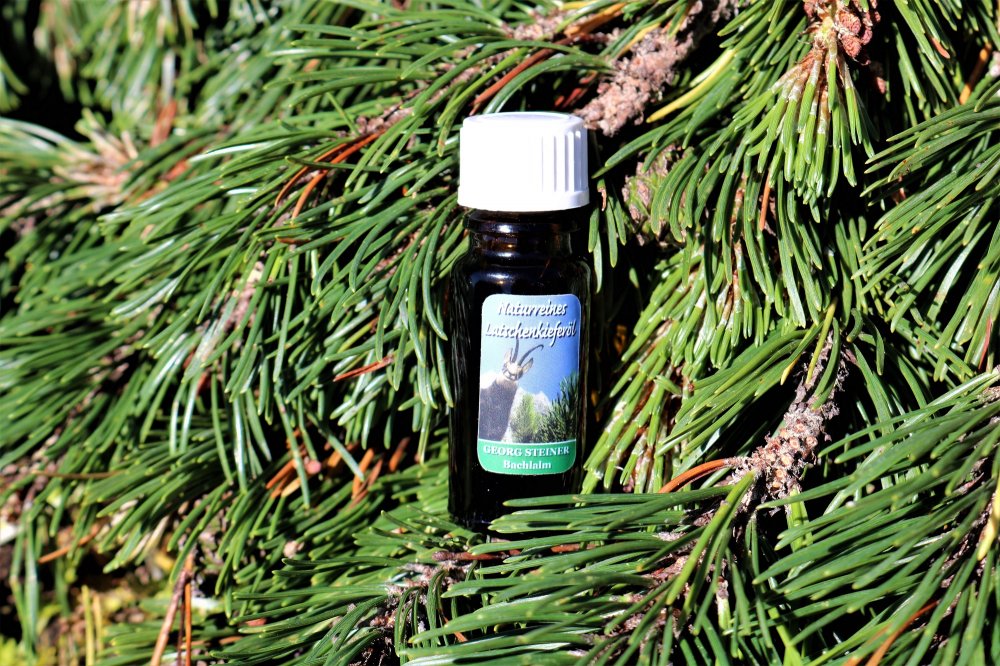 Das Öl ist aufgrund des Pflanzenstoffes Chlorophyll zunächst schön grün. Nach etwa 14 Tagen verliert es die Farbe und wird glasklar. Der 68-jährige Georg brennt seit 2005 Latschenkieferöl. Am Anfang hat er dies auf gewerblicher Basis betrieben – mittlerweile stellt er das naturreine Öl nur mehr für den Eigenverbrauch her. Das heilsame Naturprodukt zeichnet sich durch seine Vielseitigkeit und medizinische Wirkung aus und kann innerlich als Medizin und zur Inhalation bei Atemwegsproblemen angewendet werden. Es ist gut gegen Erkältungen, bei Lungenerkrankungen oder hilft als Einreibung bei Gicht, Rheuma und Nervenleiden. Manche Menschen verwenden es sogar bei diversen Hautkrankheiten oder als Badezusatz.