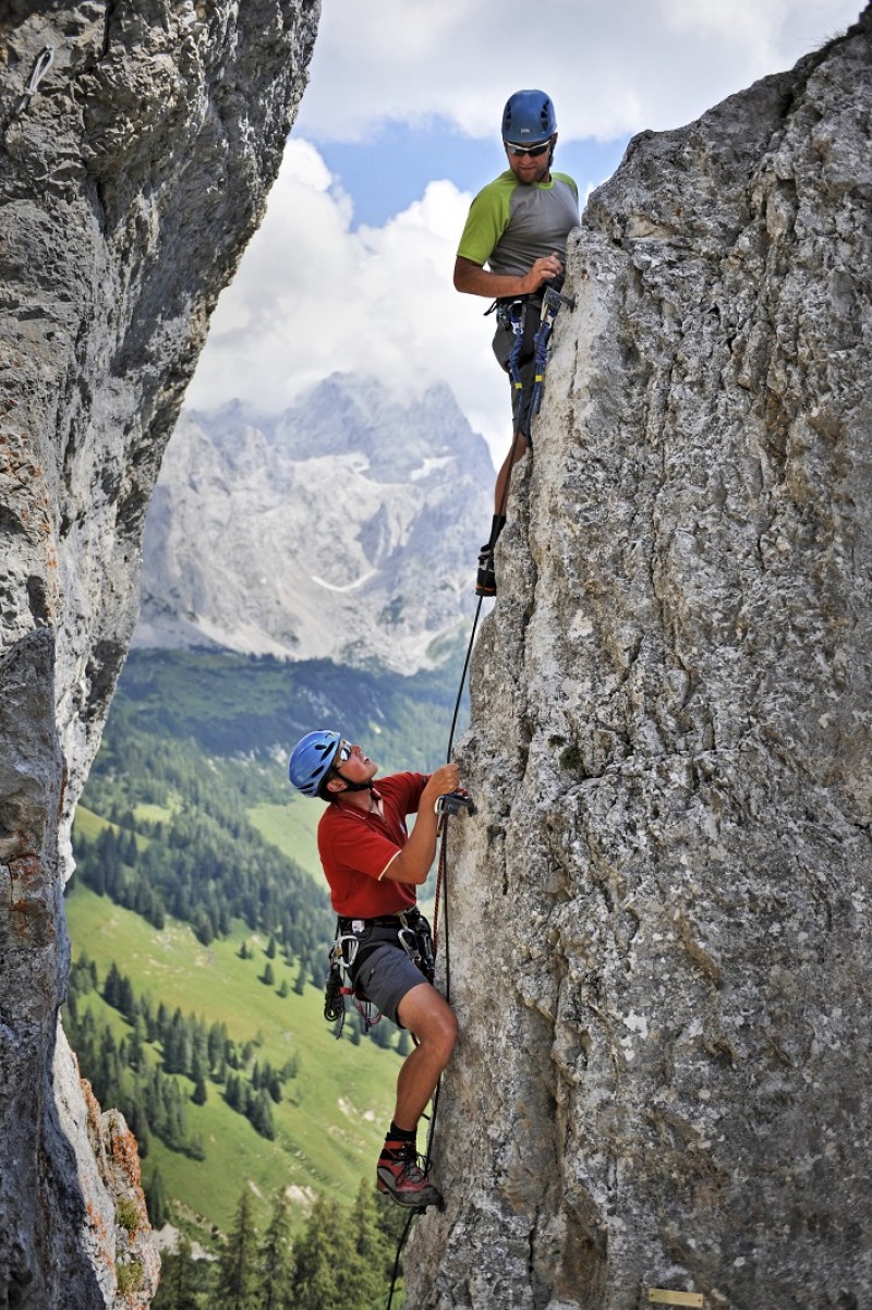 Jeden Mittwoch um 10:00 Uhr: Kletter-Schnupperkurs in der Hofalm. Erste Klettererfahrungen für Jung und Alt unter Aufsicht von geprüften Bergprofis.