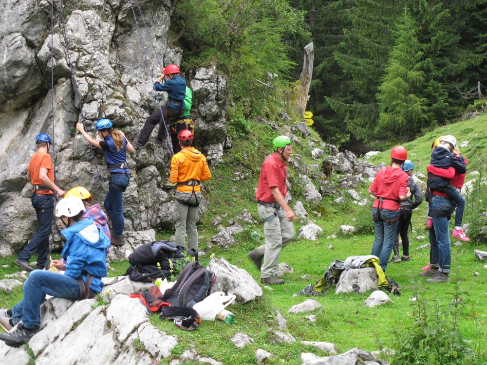 Am Übungsfelsen hat man 6 bis 7 verschiedene Möglichkeiten, diesen zu bezwingen – von einfach bis schwierig können wir alles ausprobieren. Unter der Anleitung von Martin ist dieses Erlebnis etwas Besonderes, denn er gibt uns nützliche Tipps und wir haben zugleich Spaß. Es ist wichtig, in den Bergen sicher und mit einer gewissen Portion „Know-how“ unterwegs zu sein.