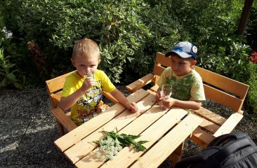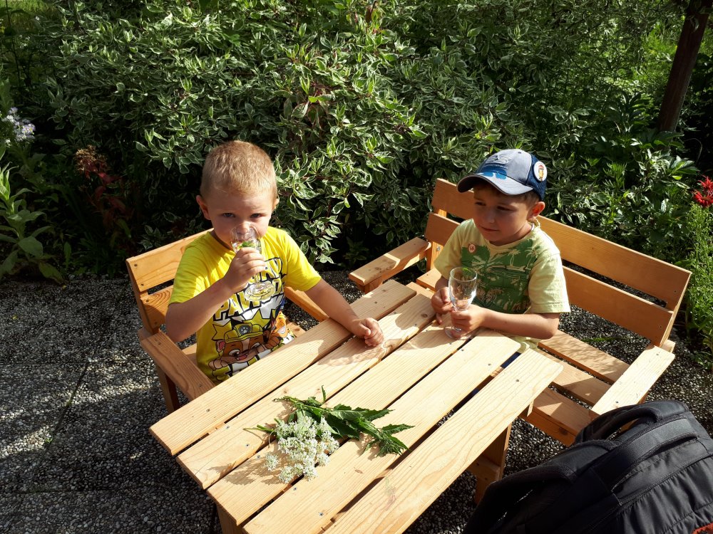 Am Ende durften wir ein Kräuterwasser verkosten, welches Elisabeth bereits einige Stunden vorher zubereitet hatte. Darin waren alle Kräuter, die sie uns gezeigt hat.