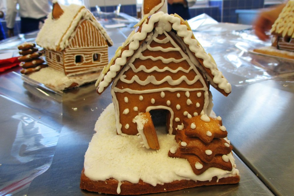 Als erstes wird der Lebkuchenteig zubereitet. Dazu erwärmt man Honig, Zucker und Butter in einem Topf und lässt die Masse leicht köcheln, bis sich der Zucker aufgelöst hat. Danach rührt man Zimt, Nelkenpulver, Kardamom und Kakaopulver ein und lässt alles abkühlen. Nun löst man das Kaliumcarbonat in Wasser auf und mischt es in die abgekühlte Masse. Danach kommen die Eier und das Mehl hinzu und schließlich wird der Teig in Alufolie verpackt und ein paar Stunden in den Kühlschrank gegeben. Dann kann es endlich richtig losgehen! Der Teig wird ca. 2 Zentimeter dick ausgerollt und in die passende Form gebracht. Das heißt, man schneidet die einzelnen Elemente für das Lebkuchenhaus aus. Grundsätzlich braucht man 2 Rechtecke für das Dach, 1 Rechteck für den Boden, 2 Rechtecke für die Wände und 2 Formen, die in einen Giebel münden (für Front- und Rückseite des Hauses). Nun sticht man Fenster und Türen aus und formt mit dem überschüssigen Teig Verzierungen für das Haus (hier kann man auch mit Keksausstechern arbeiten und Herzen oder Sterne vorbereiten). Alle modellierten Teigstücke kommen nun auf ein Backpapier und werden bei 200 Grad auf mittlerer Schiene ca. 15 Minuten gebacken. Dünnere Teile benötigen nur 10 Minuten. Danach lässt man die Formen auskühlen (am besten 2 Tage). Nun wird der Zuckerguss zubereitet. Dazu schlägt man das Eiweiß steif und streut den Staubzucker langsam ein bis eine dickflüssige Masse entsteht. Wer will, kann mit Lebensmittelfarbe einfärben. Beim Zusammenbauen vom Lebkuchenhaus verwendet man diesen Zuckerguss als Kleber. Man sollte vorsichtig basteln und einzelne Teile immer wieder etwas trocknen lassen. Sobald das Lebkuchenhaus steht, können Dekoelemente und Süßigkeiten wie etwa Smarties, Gummibärchen oder Ähnliches angeklebt werden. Und fertig ist das Knusperhäuschen! Ideal für alle kleinen Bastler und Naschkatzen.