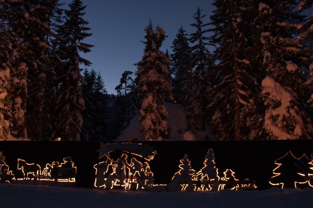 Im Dezember verwandelt sich das Gebiet von Hofalm und Almsee in ein beschauliches Weihnachtsidyll. Ein Rundweg, mit Fackeln zart beleuchtet, führt die Besucher über verschneite Almböden von der Unterhof- und Oberhofalm hinauf zum Almsee. Entlang des Weges gibt es sowohl einen überdimensional großen Scherenschnitt zu bewundern als auch eine lebensgroße Weihnachtskrippe. Traditionelle Schiachperchten sind ebenfalls anzutreffen. Weisenbläser sowie Glühwein und Punsch runden den weihnachtlichen Spaziergang ab. Gutes Schuhwerk ist erforderlich! Kosten € 2,50 pro Person. Kinder gratis! Taxitransfer ab 17.00 Uhr von der Mautstelle Hofalm im Halbstundentakt zum Preis von € 6,00 pro Person (einfache Fahrt).