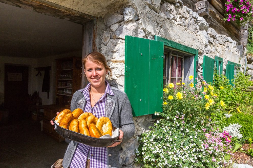 Die urige Almhütte liegt auf 1.366 m Seehöhe und ist im Sommer bewirtschaftet. Sennerin Justi und ihr Team verwöhnen uns mit hausgemachten Spezialitäten aus eigener Landwirtschaft.