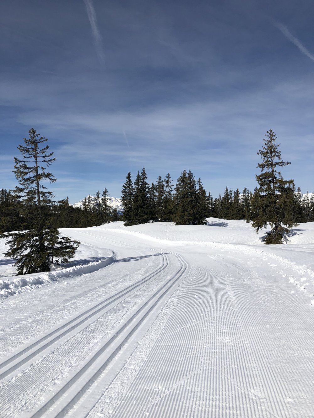 Egal ob klassisches Langlaufen, Skaten, Schneeschuhwandern oder Spazieren im Schnee – all das kannst du noch bis einschließlich Ostermontag, 13. April 2020, auf der Höhenloipe am Roßbrand genießen. Durch die hohe Lage auf rund 1.600 m finden sowohl sportlich Ambitionierte als auch Genusssuchende optimale Schneebedingungen.