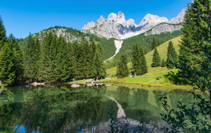 Wie wäre es mit einem Picknick am Fuße der Bischofsmütze? Man fährt entweder mit dem Wanderbus oder mit dem eigenen PKW zur Unterhof- oder Oberhofalm. Von dort aus wandert man ca. 15 Minuten hinauf bis zum Almsee.