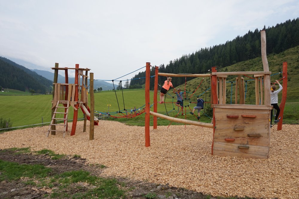 Da wir die kleine Maus mit dabei haben, entscheiden wir uns für ein gemütliches Plätzchen entlang des Bärtl´s Familienwanderweges. Wir fahren mit dem Auto bis zum Parkplatz am Fußballplatz. Von dort aus wandern wir knapp 20 Minuten vorbei an den Spielgeräten bis zu unserem Picknick-Platzerl. Wir müssen öfters stehen bleiben, damit Sarah die Pendelschaukel und die Balancierstrecke ausprobieren kann. Am Ziel des Familienweges angekommen, befindet sich ein Kletterturm und daneben eine gemütliche Wiese, wo wir uns niederlassen.