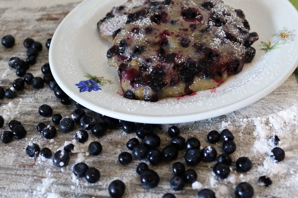 Als ersten Schritt verquirlt man das Ei mit Milch, Zucker und einer Prise Salz. Anschließend rührt man das Mehl gut unter und gibt die Heidelbeeren in die Masse. Dabei zerdrückt man ungefähr die Hälfte der Beeren, damit der Saft austritt und dann vermischt man alles, bis ein mittelfester Teig entsteht. Nun gibt man die Butter oder das Schmalz in eine beschichtete Pfanne und erwärmt diese bis das Fett heiß ist. Mittels Löffel sticht man größere Häufchen aus dem Teig, legt diese in die Pfanne und drückt sie etwas flach. Nach drei Minuten Backzeit umdrehen und auf der zweiten Seite nochmals drei Minuten backen. Aus der Pfanne nehmen und auf einem Stück Küchenpapier kurz abtropfen lassen. Am besten warm mit Staubzucker bestreut und einem Glas frischer Milch servieren!