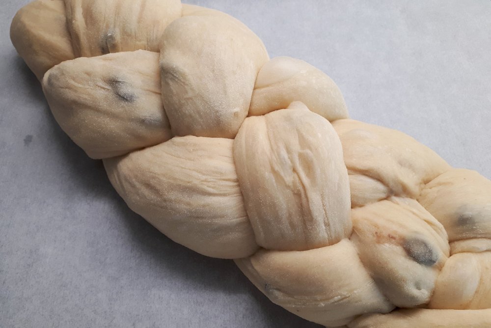 Die Milch in einem Kochtopf erwärmen bis sie lauwarm ist – nicht zu heiß, ansonsten verliert die Germ ihre Wirkung. Die Milch mit Zucker, Salz, Mehl, den zwei Eiern und der zimmerwarmen Butter (nicht flüssig!) in eine Rührschüssel geben. Die frische Germ in die Masse hineinbröseln und die Masse mit einem Knethaken für ca. 5 Minuten vermengen. Kurz vor dem Ende der Rührzeit können bei Bedarf Rosinen untergemengt werden. Wer möchte, kann diese vorher kurz in Rum einlegen. Den Teig aus der Schüssel nehmen und einmal kräftig durchkneten. Danach wieder zurück in die Schüssel legen und mit einem Geschirrtuch abdecken. Nun den Teig für ca. 30 Minuten an einem warmen Ort ruhen lassen. Ist der Teig gut aufgegangen, kann man ihn herausnehmen und nochmals mit der Hand durchkneten. Nun den Teig in acht gleich große Stücke teilen. Am leichtesten geht das, wenn man den gesamten Teig abwiegt und dann acht gleich schwere Stücke abtrennt. Die kleinen Teigstücke „rund schleifen“, dabei wird der Teig mit leichtem Druck mit der Hand auf einer bemehlten Unterlage gerollt, bis daraus eine glatte Kugel entsteht. Die Teiglinge nochmals kurz rasten lassen und dann zu länglichen Strängen ausrollen. Nun nimmt man vier Stränge und flechtet einen Zopf, dasselbe macht man dann mit den übrigen vier Strängen. Beide Striezel auf ein Blech mit Backpapier legen und nochmals für ca. 10 Minuten gehen lassen. Danach mit etwas Milch bestreichen und mit Hagelzucker oder Mandelblättern bestreuen. Jetzt kommen die Allerheiligenstriezel für ca. 25-35 Minuten bei ca. 170°C (Heißluft) in den Backofen.