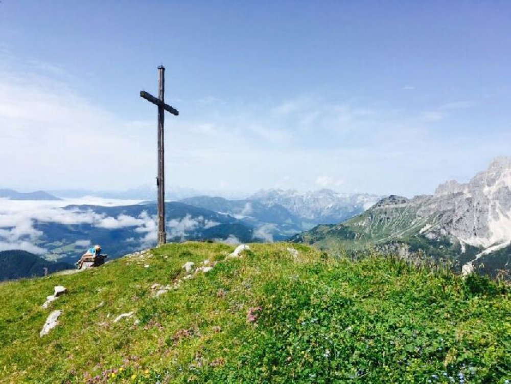 Sattes Grün und bunte Almblumen am Gipfel, ein steiniger und erdiger Weg durch schattigen Wald und sonnige Wiese. Steile Hänge und Geröll auf der einen Seite - sanfte Hügel und Latschen auf der anderen. Vor einem die mächtige Bischofsmütze, daneben das Dachsteinmassiv sowie Hohe und Niedere Tauern und hinter einem der Rettenstein – der Sulzenschneid ist nicht umsonst einer der beliebtesten Gipfel in Filzmoos: das atemberaubende Panorama ringsum und die Vielseitigkeit dieser Route lässt ein jedes Wanderer-Herz höher schlagen.