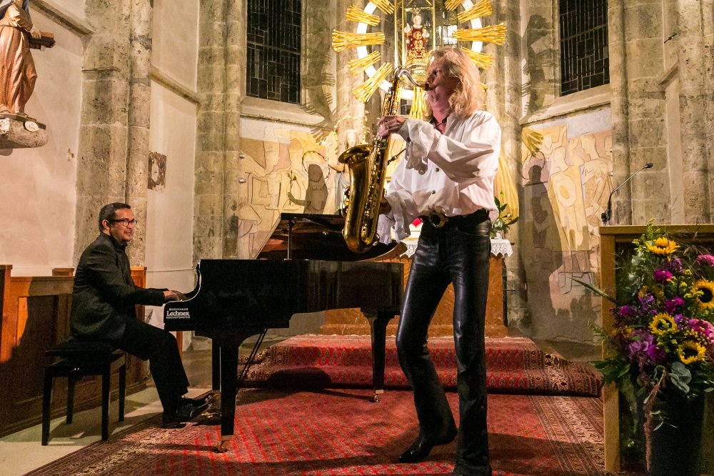 Ein Meister auf dem Saxophon ist Tilo Baron – die kleine Dorfkirche bebt, wenn Tilo auf seinem Saxophon loslegt.