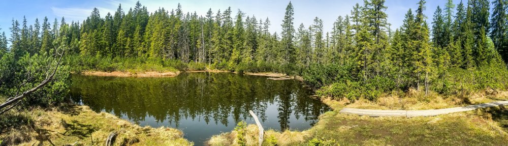 Die Sage des kleinen und tiefschwarzen Bergtümpels besagt, dass sich in seiner Tiefe ein goldener Wagen befindet, der von einem abscheulichen Lindwurm bewacht wird. Ab und zu soll auch aus den Tiefen der Lacke ein „Grollen“ zu hören sein. Ich genieße jedenfalls die Ruhe am Ufer und höre kein Grollen.