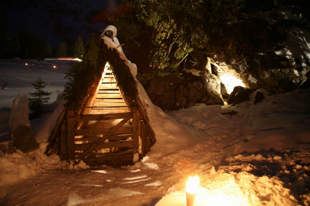 Bei der Alm angekommen, geht es durch einen Weg, mit Fackeln zart beleuchtet, hinauf zum Almsee. Scherenschnitte aus Holz am Wegesrand reißen Blicke auf sich, während man im Hintergrund bereits die Musik der Weisenbläser hören kann. Weiter geht es vorbei an lebensgroßen Weihnachtskrippen und vielleicht sogar an traditionellen Perchten. Natürlich lässt auch ein Glühweinstand nicht auf sich warten - und nicht zu vergessen die kleine Hütte, in der Weihnachtsgeschichten erzählt werden – dort versinkt man oftmals tief in Gedanken und erinnert sich an die Kindheit zurück, wie es damals war, wie Oma oder Opa die Weihnachtsgeschichten zu Hause vorgetragen haben.