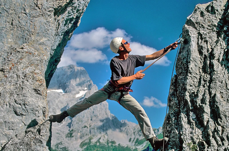 Im Gosaukamm sind sinnvoll abgesicherte, alpine Anstiege ebenso zu finden, wie moderne Sportkletterrouten in allen Schwierigkeitsgraden.