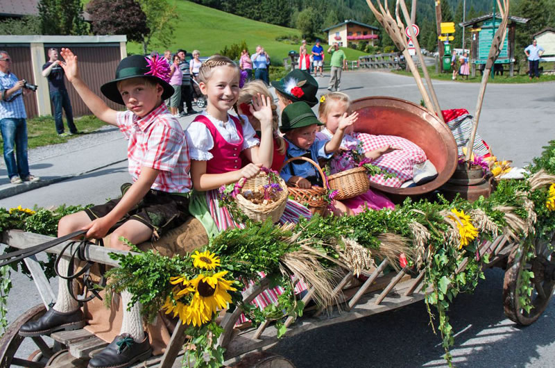 Das Hauptrequisit dieses Festes, die Erntekrone, wird mit viel Geschick von den Bäuerinnen gebunden und beim Festgottesdienst gesegnet. Die stattliche Prozession der Trachten- und Musikvereine zur Pfarrkirche begleiten Wägen voller Erntegaben, Blumen und schöner Feldfrüchte. Stolz tragen die Filzmooser ihre traditionelle Pongauer Tracht.