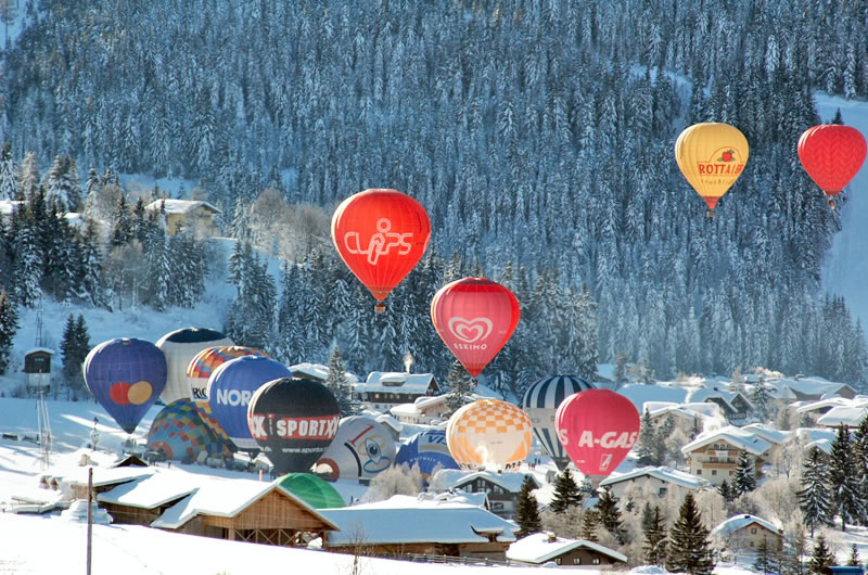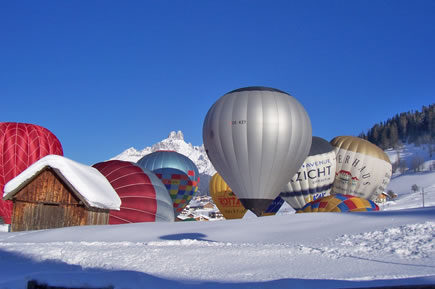 Winterliche Ballonfahrten haben ihren ganz besonderen Reiz. Von Dezember bis März, wenn die Luftverhältnisse ideal für Starts und Landungen in den Bergen sind, erleben Sie den lautlosen Aufstieg auf bis zu 3000 Meter Höhe und können Sie die Stille und den Abstand vom Alltag genießen.