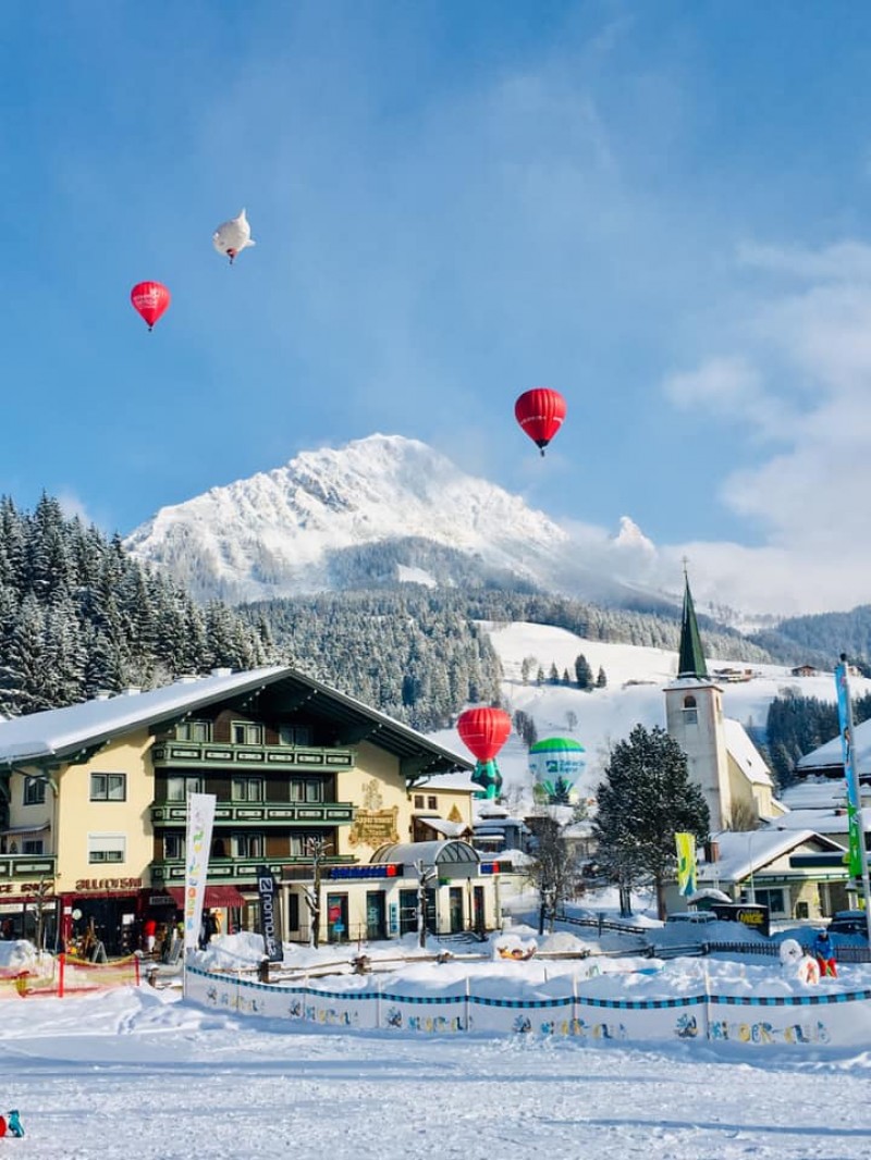 Die, im ganzen Dorf verteilten Ballone tanzen zur Musik und lassen Filzmoos im bunten Licht erstrahlen.
