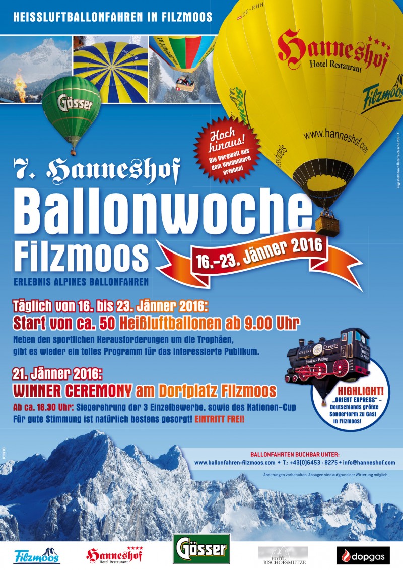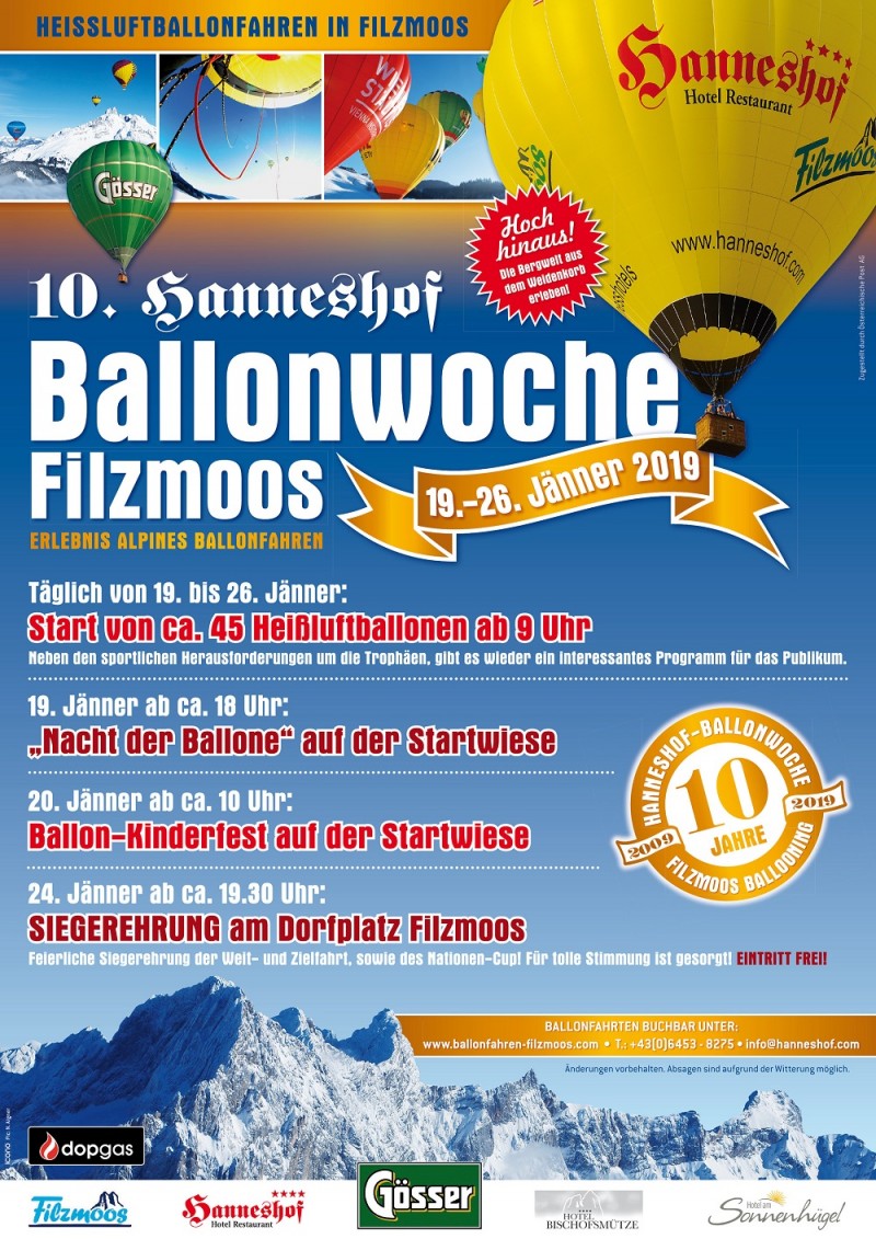 Die geografische Lage von Filzmoos, ein traumhafter, geschützter Startplatz vor der Kulisse der majestätischen Bischofsmütze und die Möglichkeit zu Ballonfahrten in den Tälern der unmittelbaren Umgebung machen Filzmoos zu einem ganz besonderen Ort für alle Heißluftballon-Liebhaber. Die Atmosphäre des Dorfes und die Offenheit der Bewohner, die den Ballonfahrern jedes Jahr das Gefühl geben, "heim" zu kommen, tragen auch dazu bei und machen das Flair und die Attraktivität des "Ballondorfes" Filzmoos aus.